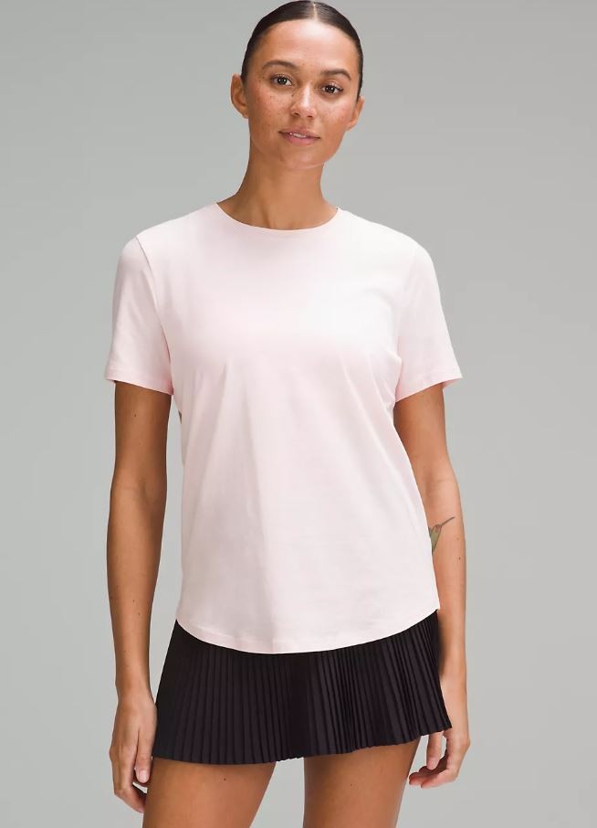 The Curved-Hem Crewneck T-Shirt allows you to attain a fashionable appearance while maintaining optimal performance. The fashionable and adaptable design of this cropped item enhances any casual setting, including your activewear ensemble. Shop Now!
